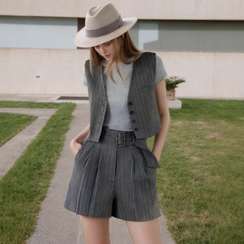 Женский Повседневный весенне-летний модный костюм с шортами с высокой талией, тонкий дышащий жилет без рукавов, оптовая продажа