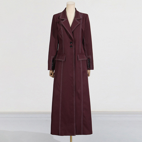 เสื้อโค้ทตัวยาวไฮเอนด์ของผู้หญิงแฟชั่นใหม่ล่าสุดตราเอวสลิมฟิตคอปกขนาดใหญ่แขนยาวกระดุมแถวเดียววินเทจสำหรับฤดูใบไม้ร่วงและ2025